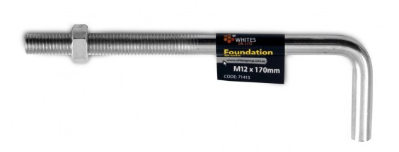 Whites Foundation Bolts are an L shape bolt that are set into concrete as a foundation for attaching framing and sheds to concrete slabs. Once the concret is set, the bolts are fimrly secured and ready for use.