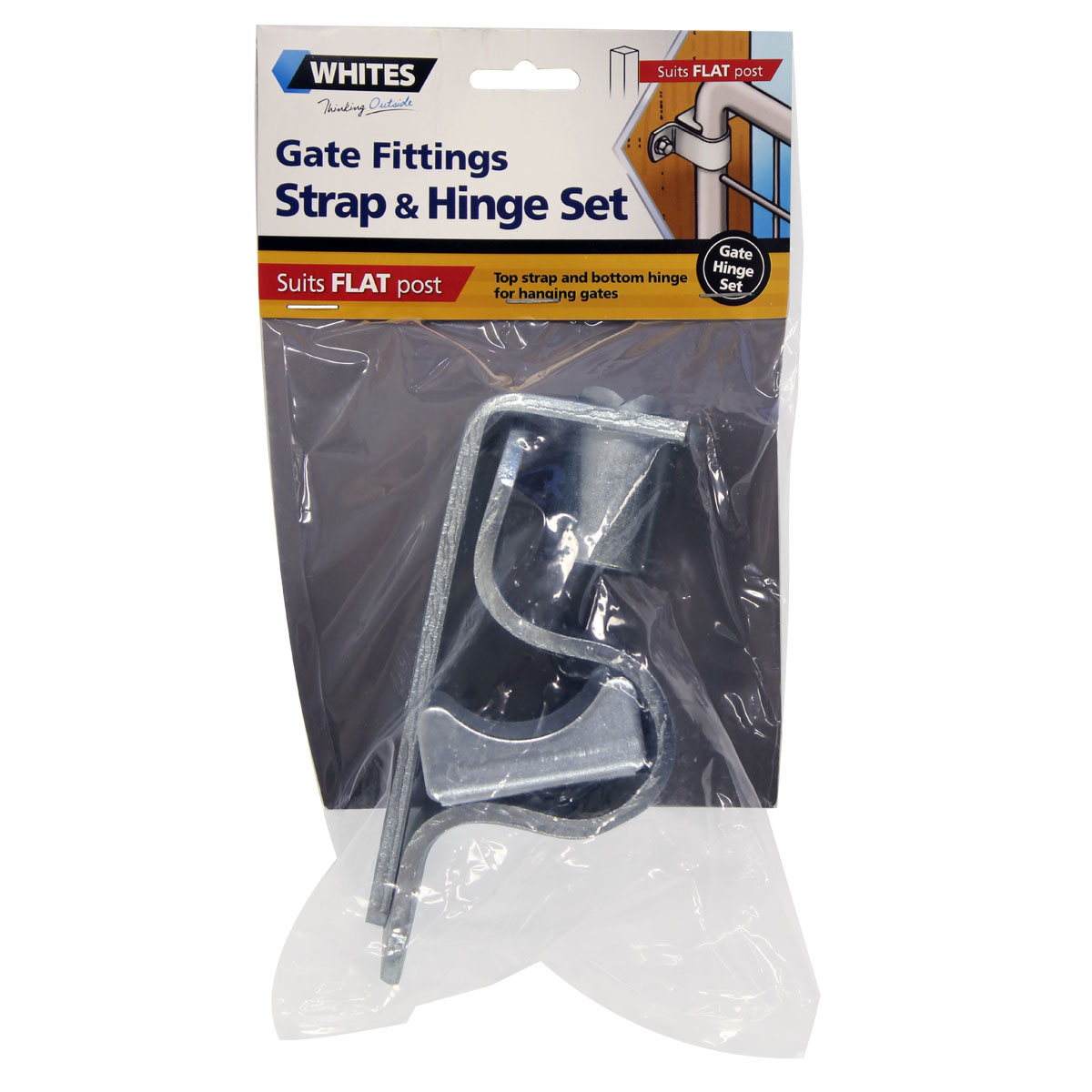 Whites Strap & Hinge Sets provide a convenient way to hang gates. These are suitable for round or flat posts and 25NB gates. For installation, ensure that you use screws that are suitable for the type of post; Strap & Hinge can also be welded on steel posts.