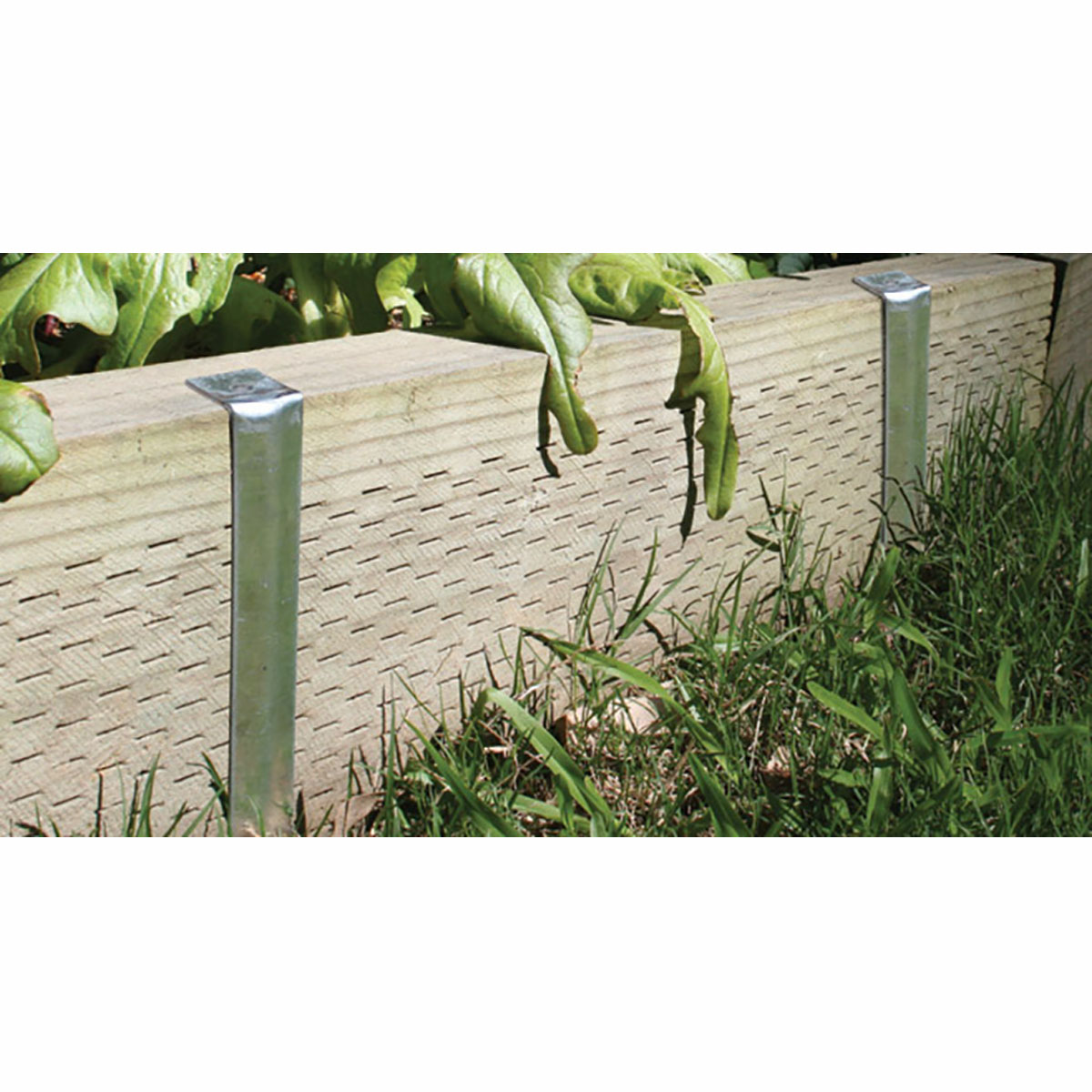 Whites Edging Stakes are ideal for securing garden edges, formwork and tent guys. The unique ‘V’ shape helps to resist bending, the flat top allows for easy driving and removal and the hole on the top enables easy screw or nail fixing.