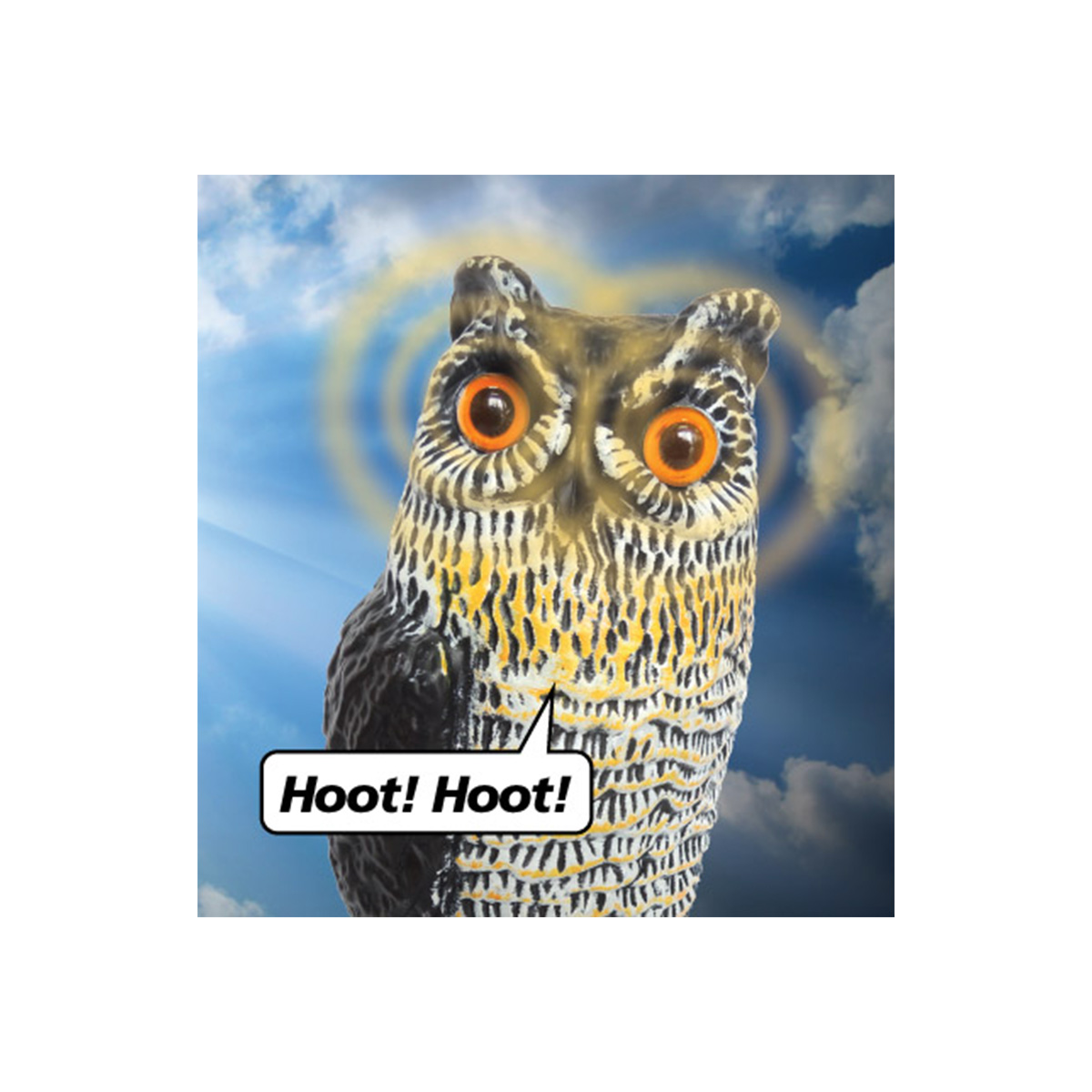 Whites Solar Power Owl deters birds and rodents safely from gardens and outdoor areas. The owl's motion sensor detects movement and emits a hooting sound; the light sensor activates glowing eyes during the night.